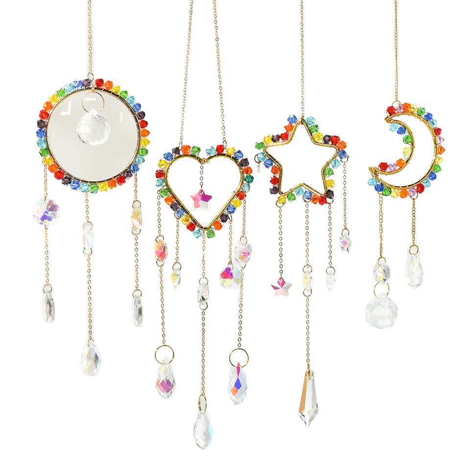 จี้คริสตัลรูปดาวพระจันทร์พร้อมจี้ห้อยกระดิ่งหน้าต่างปริซึมสำหรับตกแต่งบ้านสวนงานแต่งงานงานปาร์ตี้ขายส่ง
