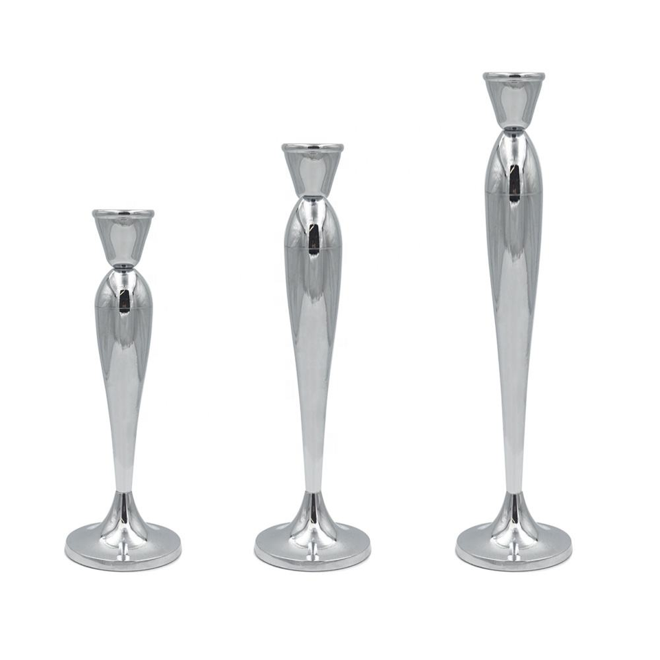 เชิงเทียนโลหะสไตล์โมเดิร์นแบบกำหนดเองได้ พร้อมเคลือบสีเงิน สำหรับตกแต่งงานแต่งงานและบ้าน