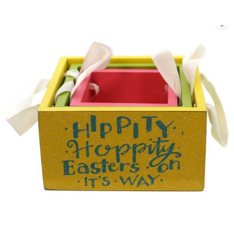 การจัดเก็บไข่ที่ทำจากไม้ตกแต่งโดยไม่มีไข่อีสเตอร์
