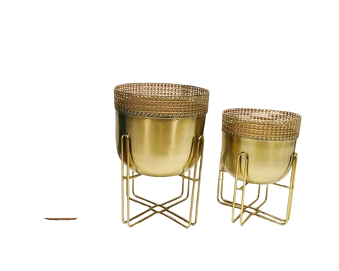 ชุดกระถางต้นไม้เหล็กทนทานดีไซน์ทันสมัย2ชิ้นพร้อมสีและขนาดที่กำหนดเองสำหรับตกแต่งสวนกลางแจ้งและห้องนั่งเล่น