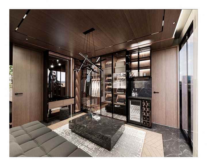 เฟอร์นิเจอร์ห้องนอนครึ่งความสูงสไตล์ทันสมัยตู้เสื้อผ้าห้องล็อกเกอร์พร้อมแผงไม้ดีไซน์สำหรับใช้ในบ้าน