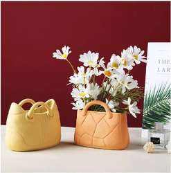 แจกันเซรามิกรูปทรงกระเป๋าถือสไตล์โมเดิร์นของตกแต่งบ้านสำนักงานโรงแรมการจัดดอกไม้แบบเรียบง่าย