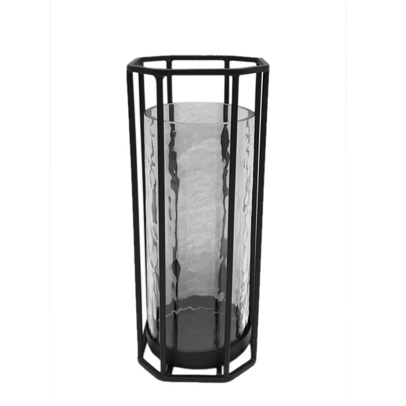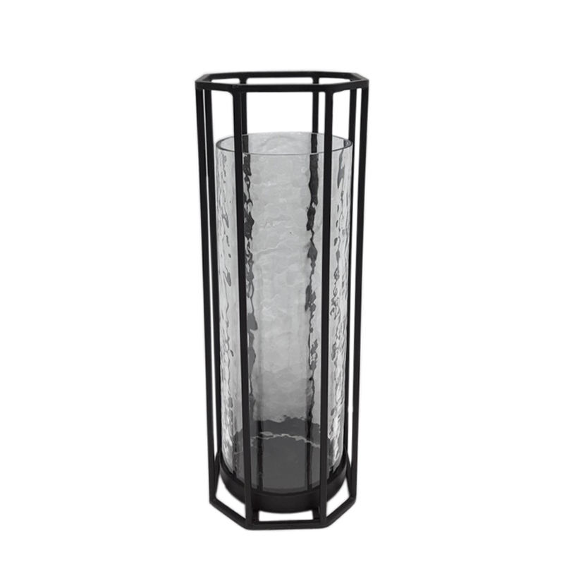 Modern Style Handmade Aluminum Glass Hurricane Latest Design for Hotel and Home Decoration Black Color for Christmas