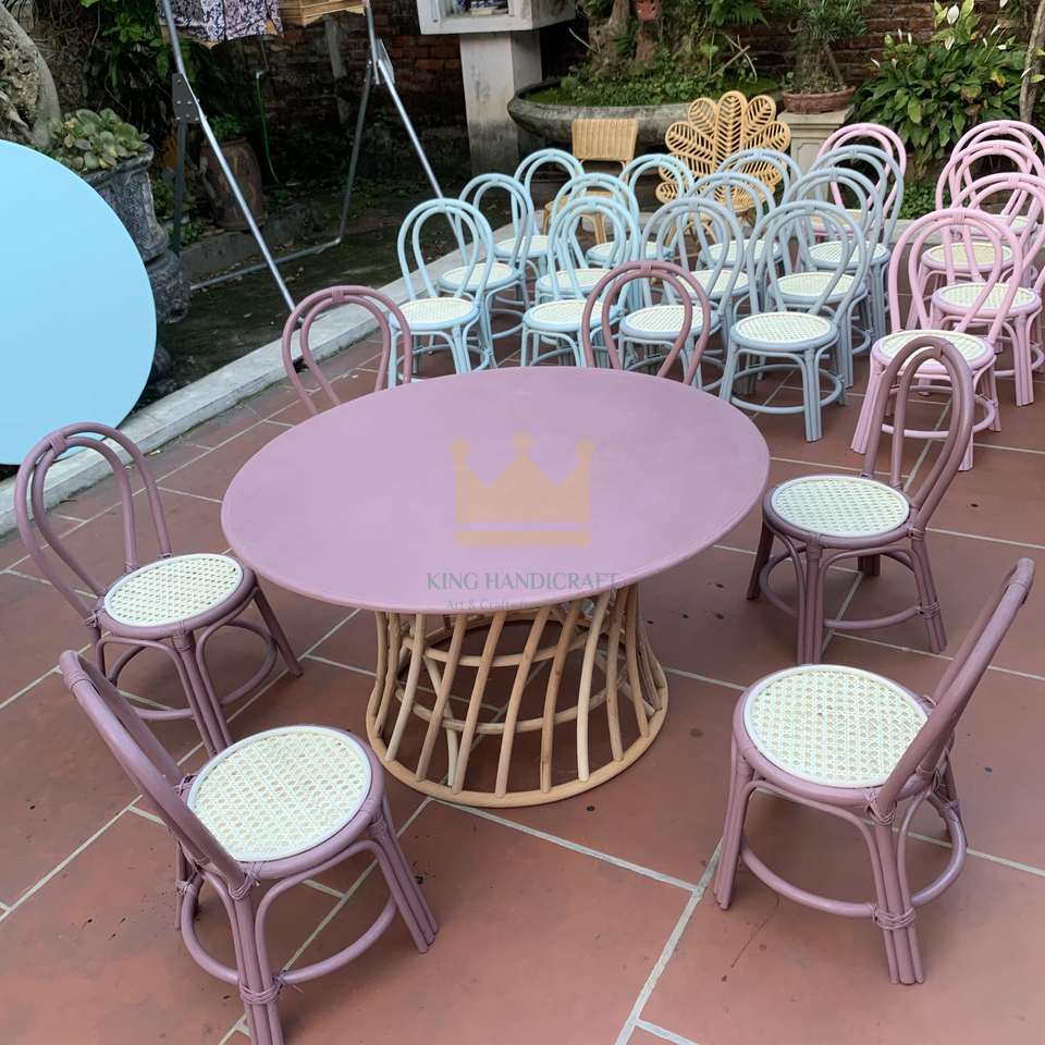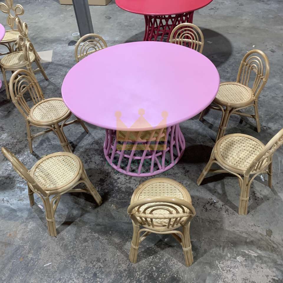 โต๊ะหวายทำมือสไตล์โมเดิร์นสำหรับเด็กสำหรับโรงแรมชุดรับประทานอาหารสำหรับระเบียงกลางแจ้งสไตล์น่ารักสำหรับเด็ก