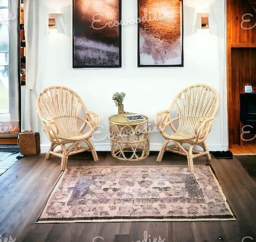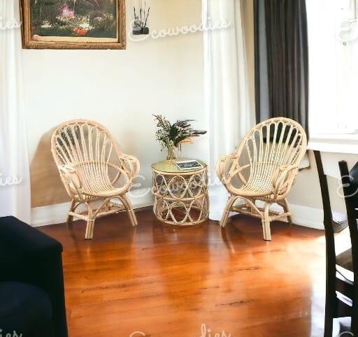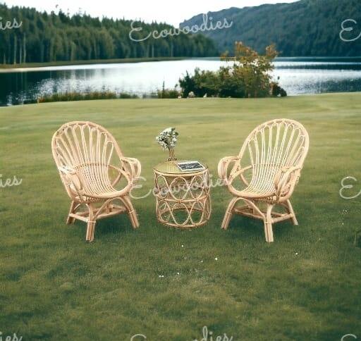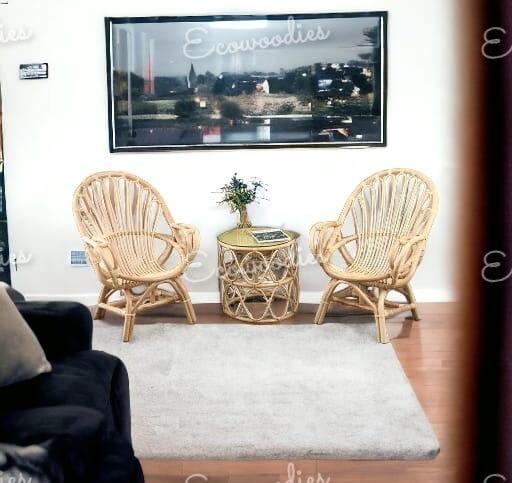 Modern Style Handmade Bamboo Cane Chair Set of 2 round Ottoman Stool for Bedroom Office Park Villa or Garden Use