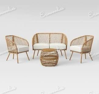 โซฟาไม้ไผ่2ที่นั่ง + เก้าอี้2ตัวพร้อมโซฟาออตโตมันสำหรับระเบียงสวนสไตล์โมเดิร์นหรูหรากลางแจ้งเป็นมิตรกับสิ่งแวดล้อม