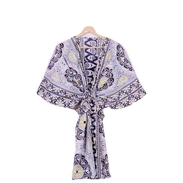 ชุดเดรสลำลองฤดูร้อนสไตล์มินิ ผ้าฝ้ายแท้ 100% งานแฮนด์เมดทันสมัยสำหรับผู้หญิง ลายดอกไม้ คอวี แขนยาว ทรงหลวม ใส่สบาย เหมาะสำหรับฤดูใบไม้ผลิ