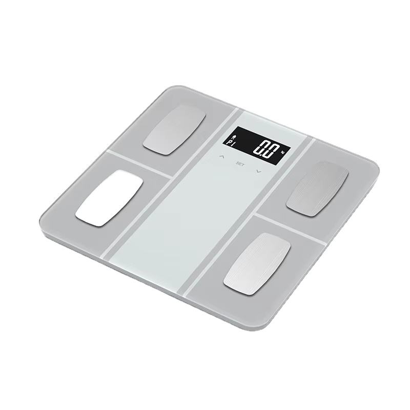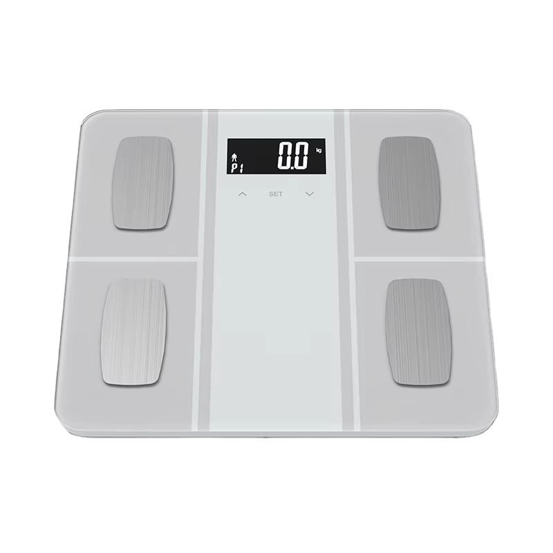 แพลตฟอร์มกระจกนิรภัยเทมเปอร์หน้าจอ LCD แบบดิจิตอลเครื่องชั่งวัดไขมันในร่างกายน้ำหนัก180กก. สไตล์โมเดิร์น