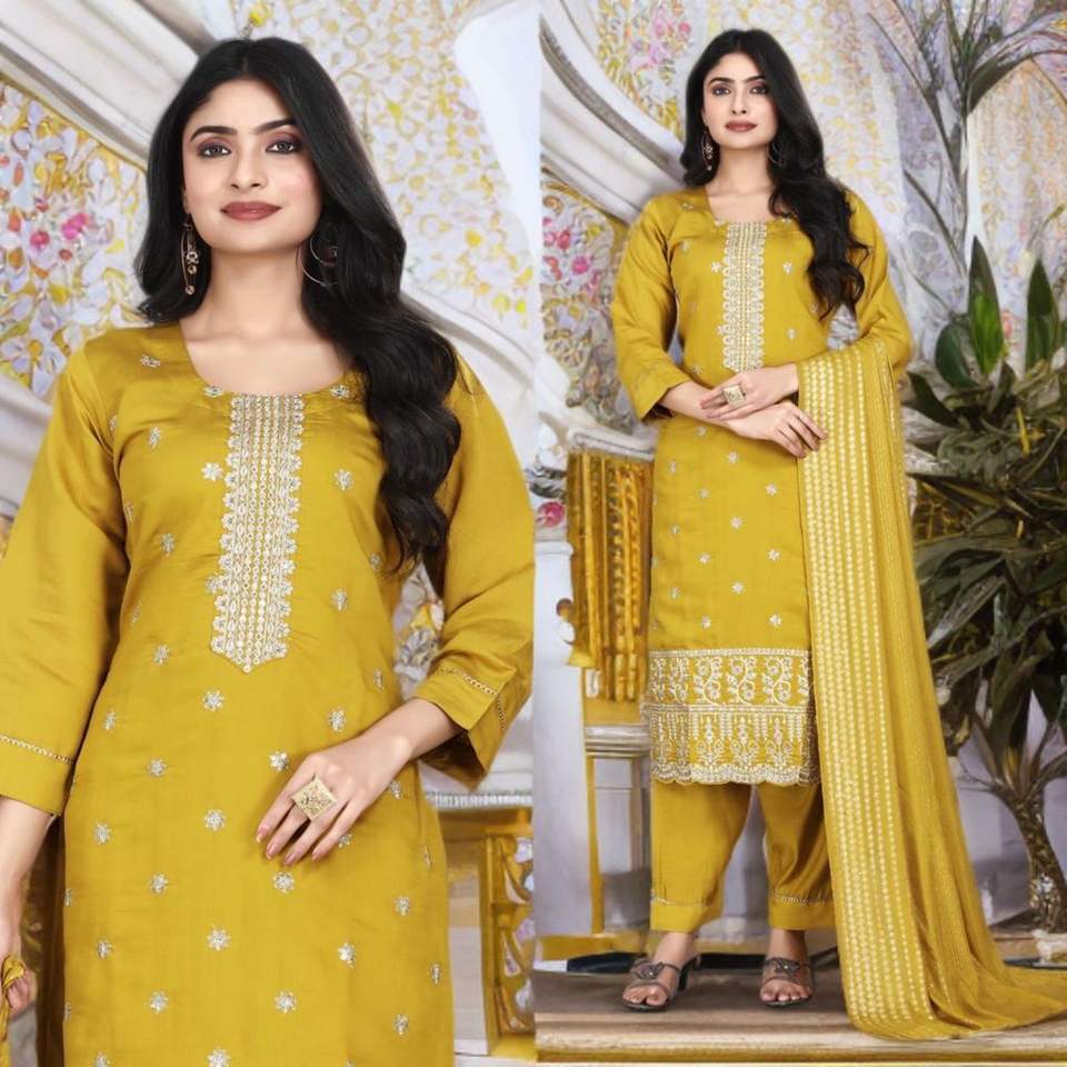 ชื่อผลิตภัณฑ์:ผ้าไหมโรมันแฟนซีวิสคอสพร้อมเลื่อมทำงาน kurati กางเกงและ dupatta