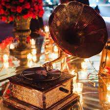 เครื่องเล่นแผ่นเสียงทองเหลืองและไม้สไตล์ทันสมัย