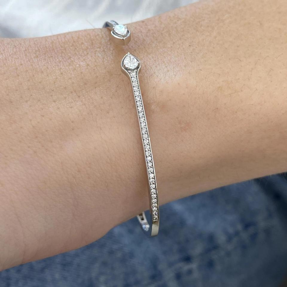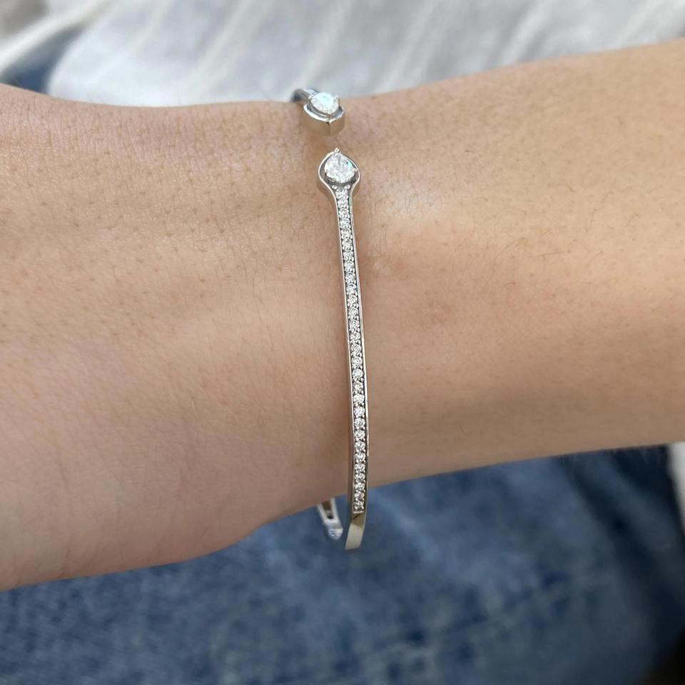 สร้อยข้อมือเพชรสีขาวชุบทอง925สเตอร์ลิงสีเงินสเตอร์ลิงสำหรับผู้หญิงได้รับการรับรองจากร้าน IGI สไตล์โมเดิร์น