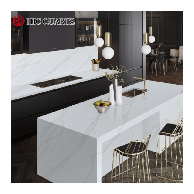 เคาน์เตอร์หินอ่อน Calacatta dolomite สไตล์โมเดิร์นพื้นสีเทาอ่อนบนพื้นหลังสีขาวสำหรับห้องครัวหรือโรงแรม