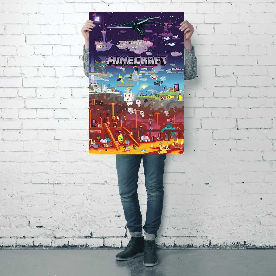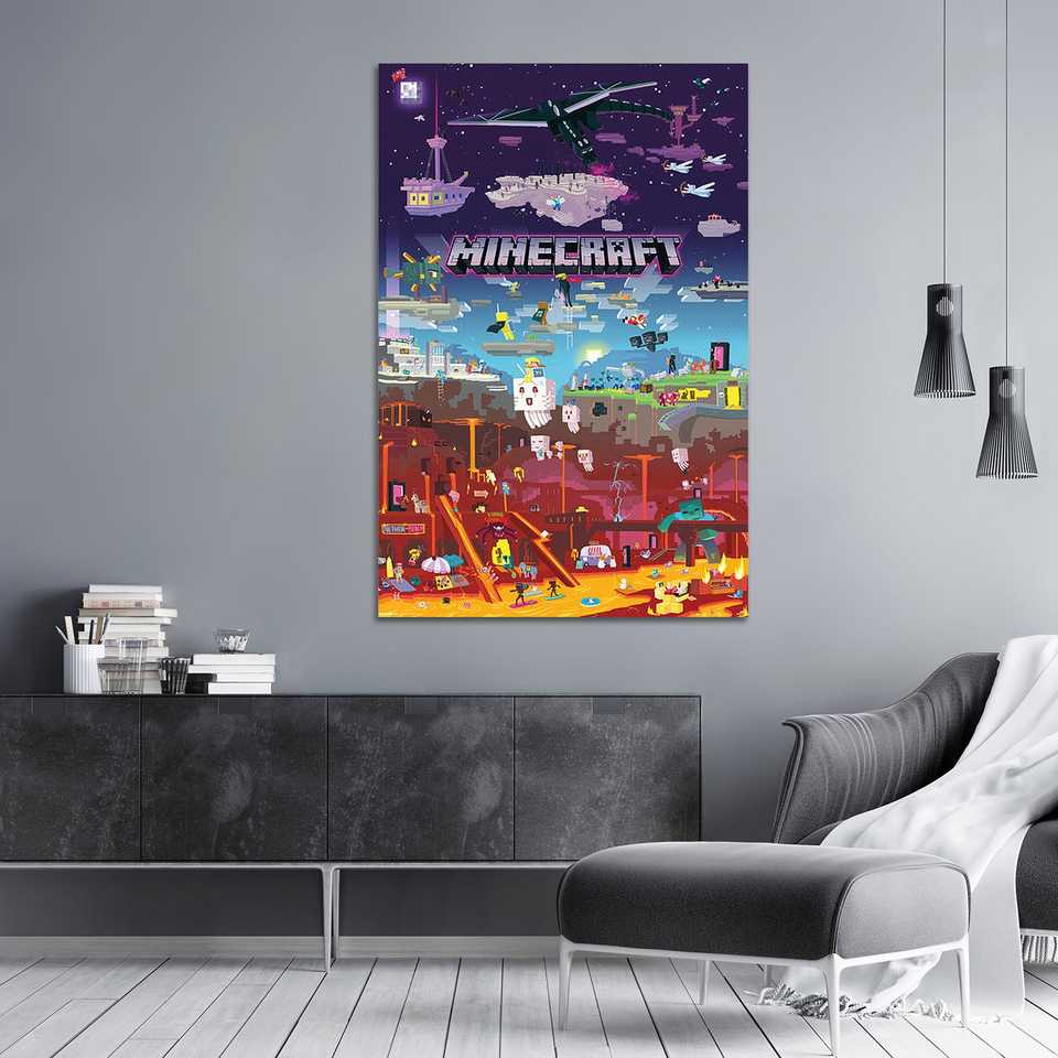 โปสเตอร์มายคราฟสไตล์โมเดิร์น ดีไซน์โลกภายนอกผ้าแคนวาส