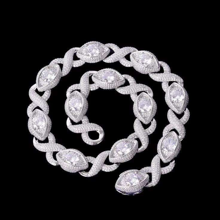 สร้อยคิวบันสไตล์โมเดิร์นประดับมอยส์ซาไนต์ เงินชุบทองและเงิน งานสั่งทำพิเศษ สไตล์สตรีท สำหรับงานปาร์ตี้ งานหมั้น มีจำหน่ายแล้ว