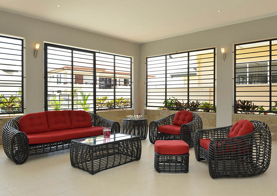 เฟอร์นิเจอร์สวนกลางแจ้งสไตล์โมเดิร์นเพิ่มสัมผัสริมทะเลให้กับสวนของคุณเรือนกระจกห้องนั่งเล่นโรงแรมโซฟาที่ทันสมัยชุดนี้
