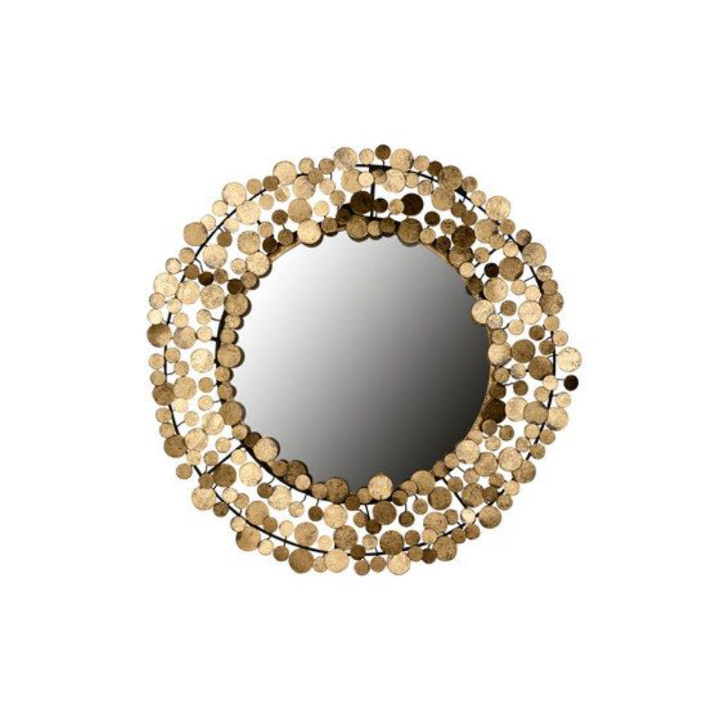 กระจกติดผนังทรงกลมสไตล์โมเดิร์น คุณภาพระดับแกลเลอรี กรอบไม้ตกแต่งด้วยทองคำเปลว งานแฮนด์เมด กระจกเงาขอบเอียง สำหรับตกแต่งบ้าน