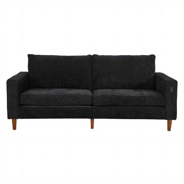 โซฟาผ้ากำมะหยี่สีดำสไตล์โมเดิร์นสำหรับนั่งหลายคน เหมาะสำหรับห้องนั่งเล่นหรือสำนักงาน พร้อมพอร์ต USB