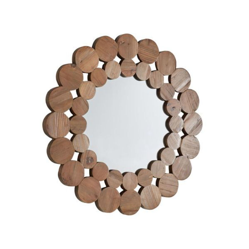 กระจกติดผนังทรงกลมกรอบไม้เนื้อแข็งสไตล์โมเดิร์น ลายเปลือกไม้ธรรมชาติ ตกแต่งขอบด้วยทองคำ ราคาประหยัด