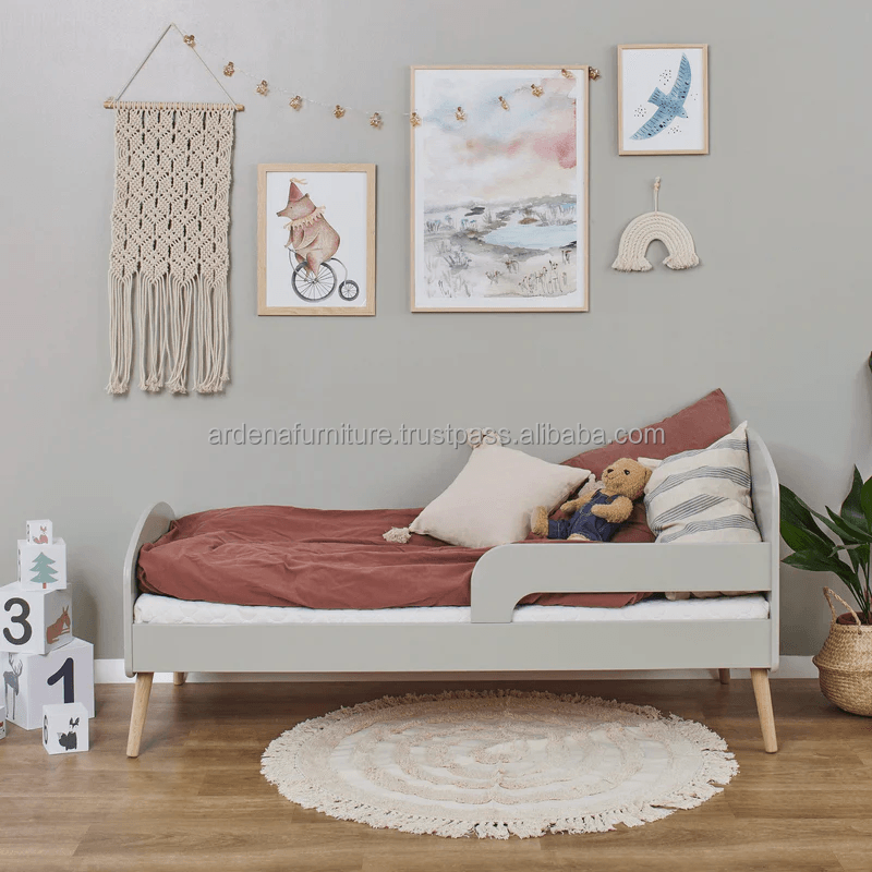 เตียงเด็กไม้เนื้อแข็งสไตล์โมเดิร์นสำหรับบ้านโรงเรียนโรงแรมโรงพยาบาลสำหรับห้องนอนห้องนั่งเล่นเฟอร์นิเจอร์มีสีเทา