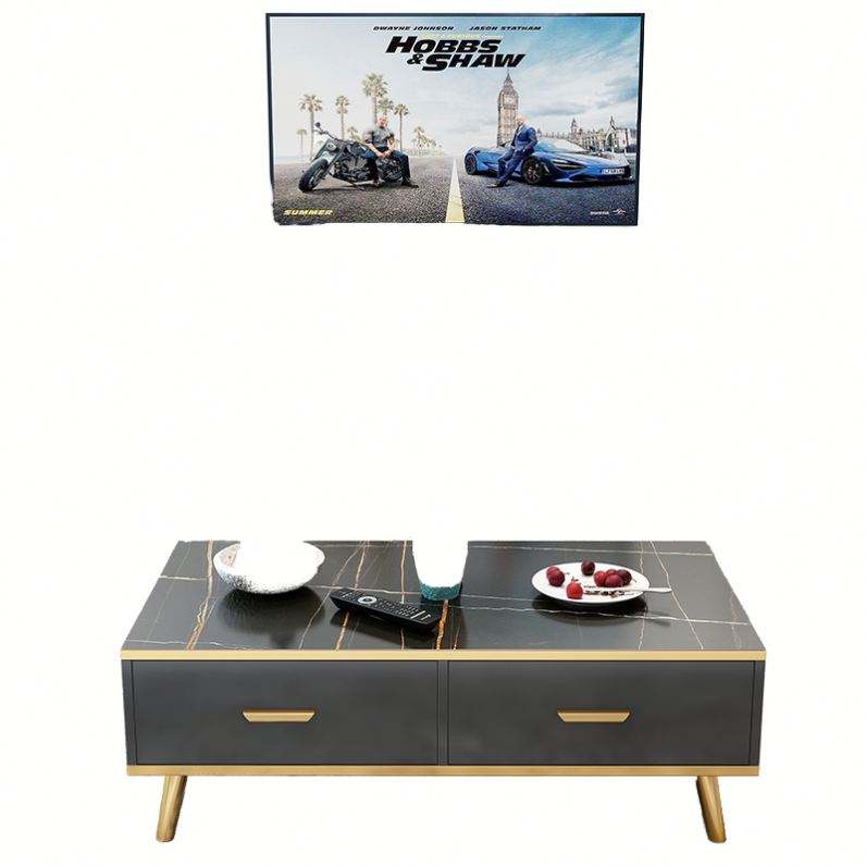 HMS ชั้นวางทีวีแบบเปิดได้59สีดำคอนโซลทีวีแบบพับได้สำหรับห้องนั่งเล่น
