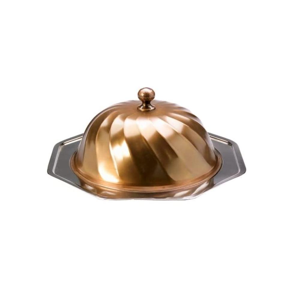 ขาตั้งเค้กสแตนเลสสตีลสไตล์โมเดิร์น พร้อมฝาครอบทรงโดมทองแดงโบราณ สำหรับงานแต่งงาน งานฉลองครบรอบ
