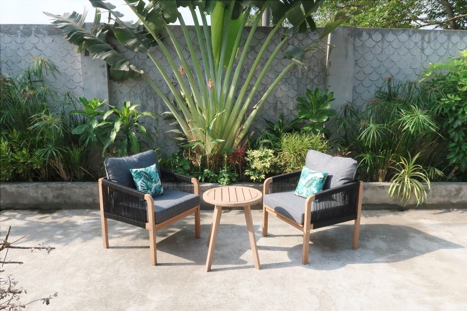 ชุดโซฟาไม้อะคาเซียแข็งแบบพับได้สำหรับใช้กลางแจ้งในห้องนั่งเล่นสวนและห้องครัวแบบเวียดนามจำนวน3ชิ้น