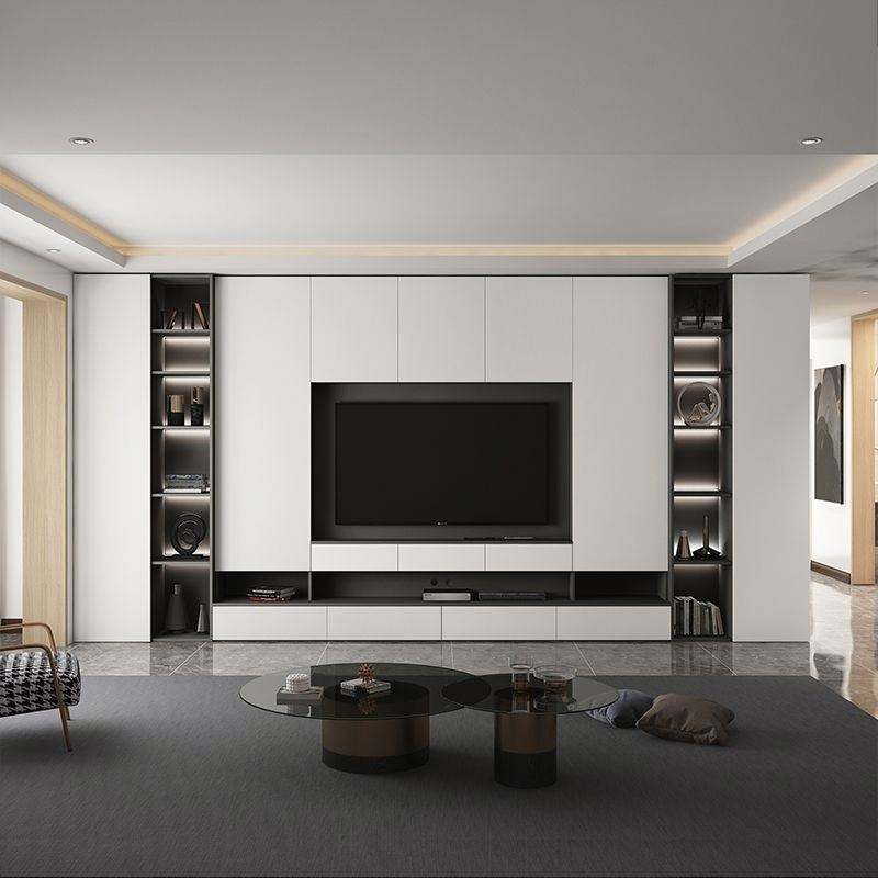 ตู้วางทีวีพร้อมไฟ LED แบบตั้งโต๊ะสไตล์โมเดิร์นทำจากไม้หรูหราติดผนังทีวีห้องนั่งเล่นเฟอร์นิเจอร์