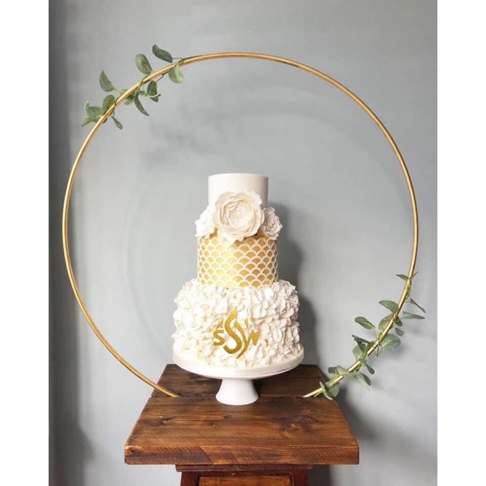 แท่นวางเค้กโลหะสไตล์โมเดิร์นรูปทรงกลมขนาดใหญ่อุปกรณ์สำหรับงานเลี้ยงและงานแต่งงานอุปกรณ์เสริมสำหรับวางบนโต๊ะ