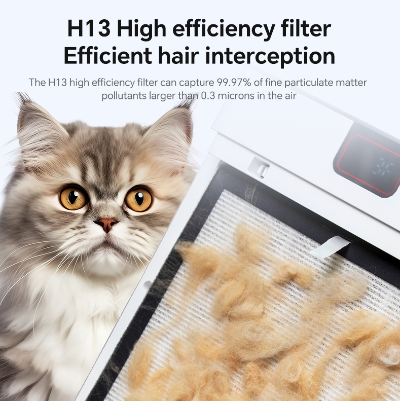 เครื่องฟอกอากาศสำหรับสัตว์เลี้ยงแบบพกพา ทันสมัย สวยงาม ทนทาน เสียงเบา เป็นมิตรกับสิ่งแวดล้อม พร้อมไส้กรองประสิทธิภาพสูง H13 ใช้งานง่ายสำหรับสุนัข