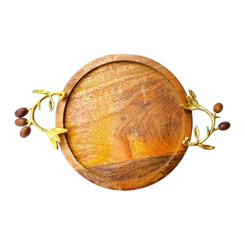 ถาดไม้และกระดานเสิร์ฟอาหารลายดอกไม้พร้อมที่จับสีเงินหรูหราทันสมัย