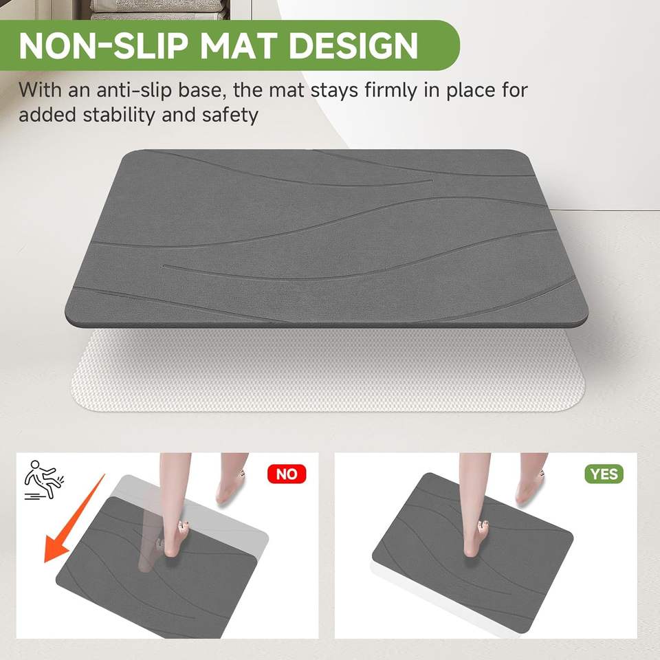 แผ่นรองอาบน้ำกันลื่นแบบดูดซับน้ำได้ดี รุ่นใหม่ ดีไซน์ทันสมัย ผลิตจากดินไดอะตอมเมียส สามารถปรับแต่งได้