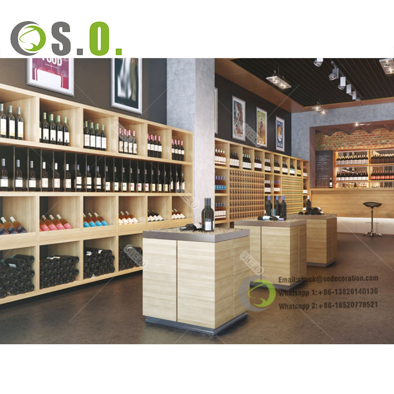 ร้านซุปเปอร์มาร์เก็ตสมัยใหม่ชั้นวางสุราไวน์ออกแบบตู้แร็คตู้ไม้ไวน์แบบกําหนดเองสําหรับห้องใต้ดิน