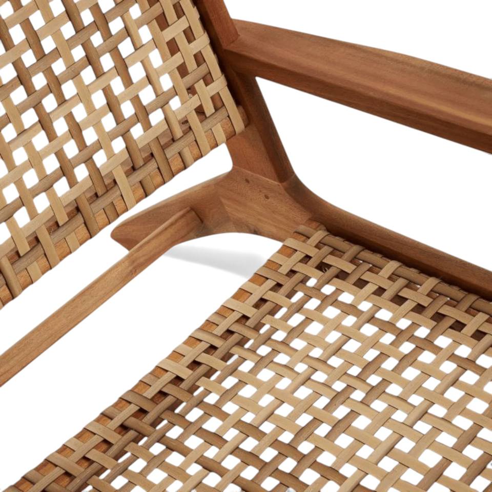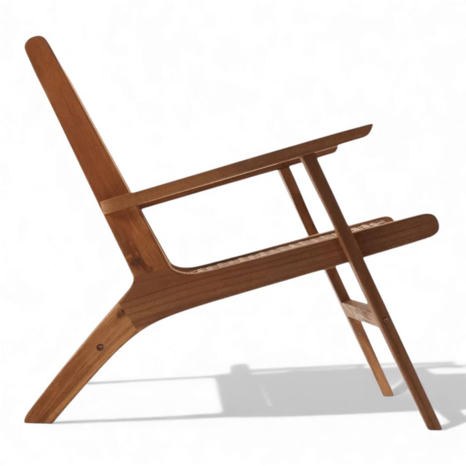 Modern Sustainable Solid Teak Wood Frame Lounge Chair with Arm Eco-Friendly Outdoor/Indoor Woven Leisure Chair for Apartment