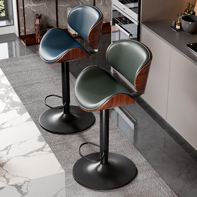 ชุดเก้าอี้บาร์ทรงสูงแบบหมุนได้ทันสมัย ปรับความสูงได้ พร้อมที่พักเท้า หุ้มหนัง PU สไตล์อินดัสเทรียล โครงไม้