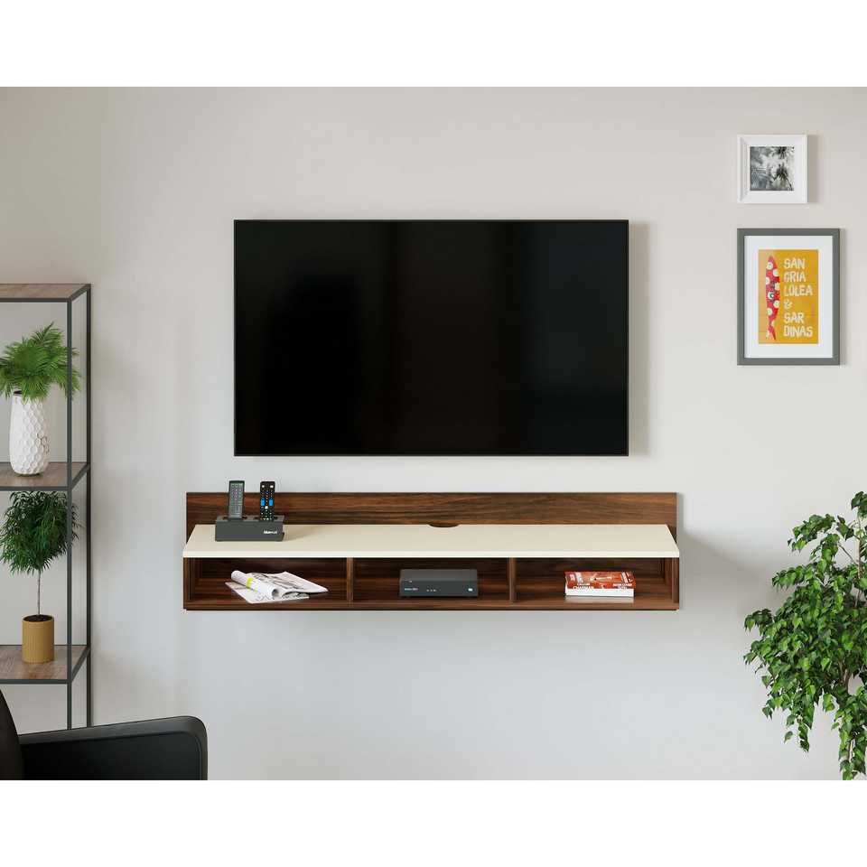 ตู้วางทีวีทันสมัยสำหรับห้องนั่งเล่น สีเรย์นอลด์บราวน์เมเปิ้ลและเบจ พร้อมชั้นวางของ
