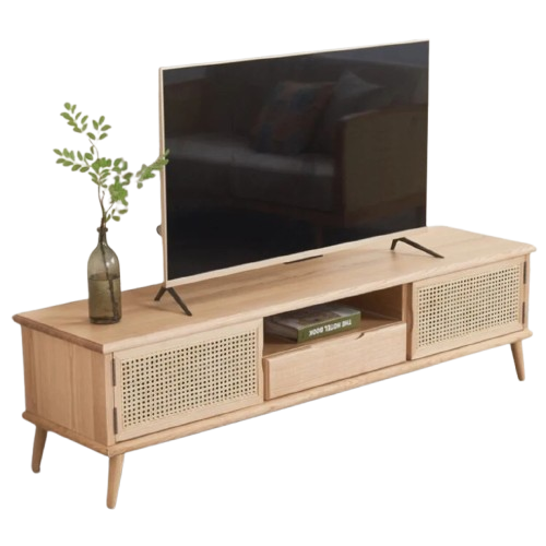 ตู้วางทีวีไม้มะม่วงทำมือทันสมัย พร้อมช่องเก็บของแบบถอดได้และปรับได้ เฟอร์นิเจอร์รักษ์โลกสำหรับห้องนั่งเล่น บ้านพักอาศัย โรงแรม และอพาร์ตเมนต์