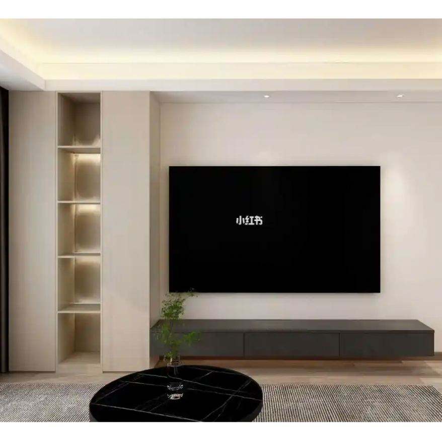 ตู้ทีวีติดผนังทรงสูงทันสมัยสไตล์แผงไม้พร้อมที่เก็บของเต็มผนังสำหรับบ้านห้องทานอาหารสำหรับห้องนั่งเล่นห้องนอนโรงแรม