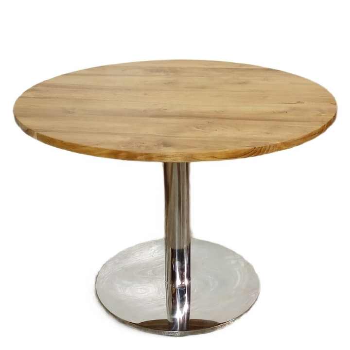 โต๊ะร้านอาหารไม้สักทันสมัย โต๊ะรับประทานอาหารกลางแจ้งทรงกลมรักษ์โลก โต๊ะกาแฟไม้แข็งแรงทนทานพร้อมขาเหล็กสแตนเลส
