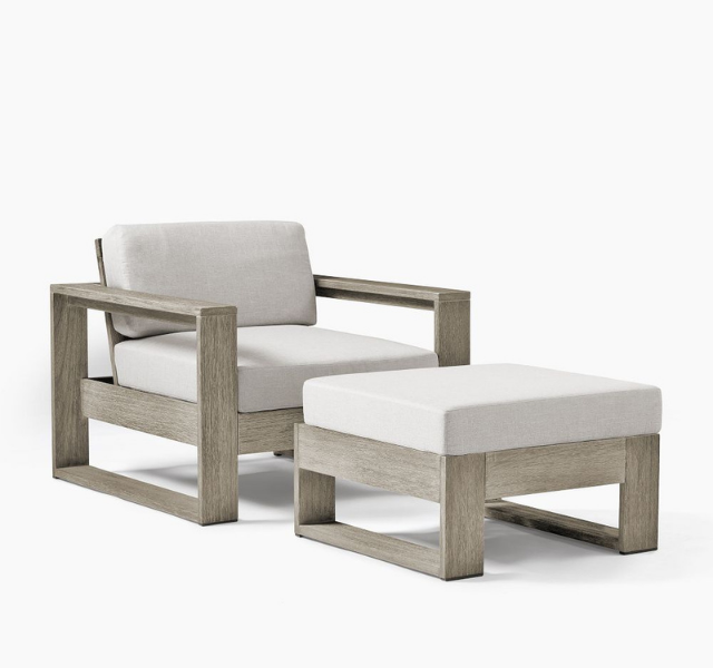 เก้าอี้อาบแดดไม้สักทันสมัย ดีไซน์ทรอปิคอล เป็นมิตรกับสิ่งแวดล้อม พร้อมออตโตมัน เหมาะสำหรับริมสระน้ำ โรงแรม วิลล่า ลานบ้าน และสวน