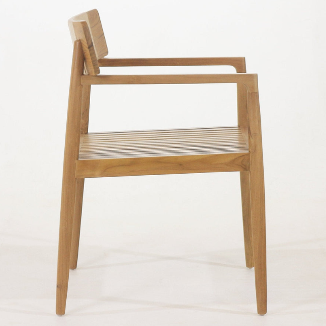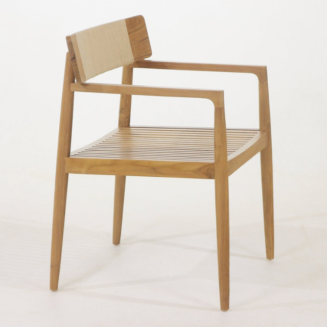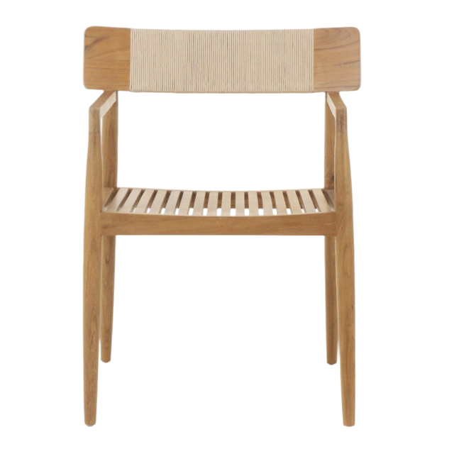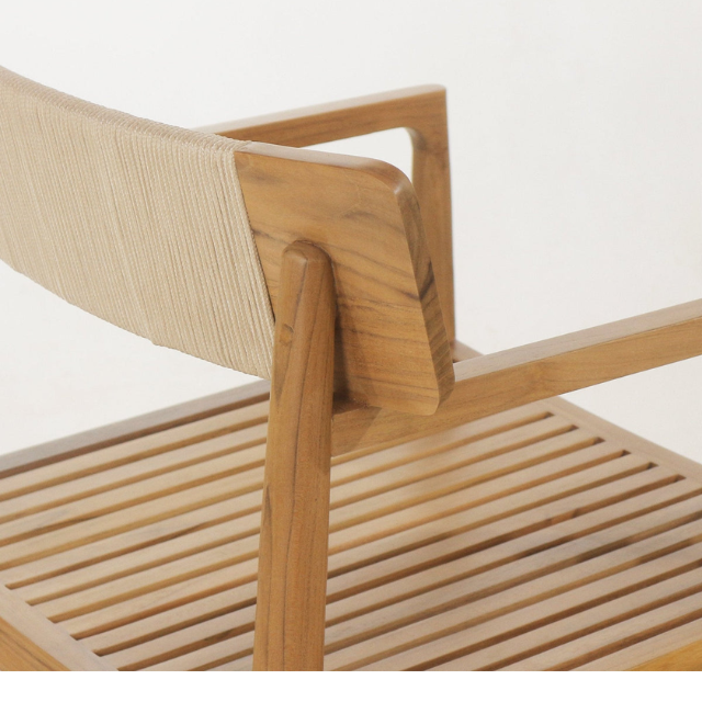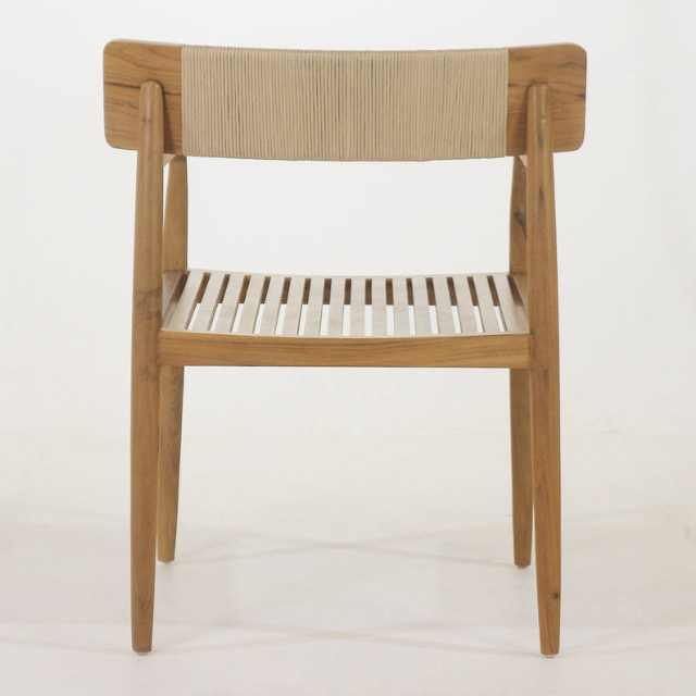 Modern Teak Wood Outdoor Dining Chair with Rope Backrest, Solid Wood Furniture for Patio or Cafe Use