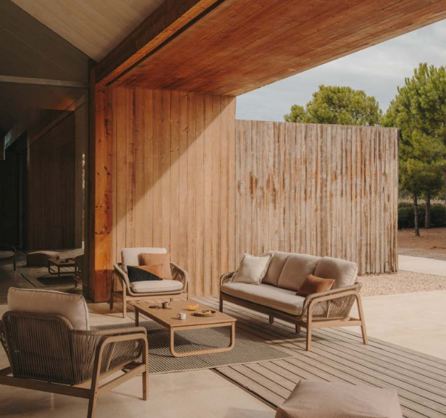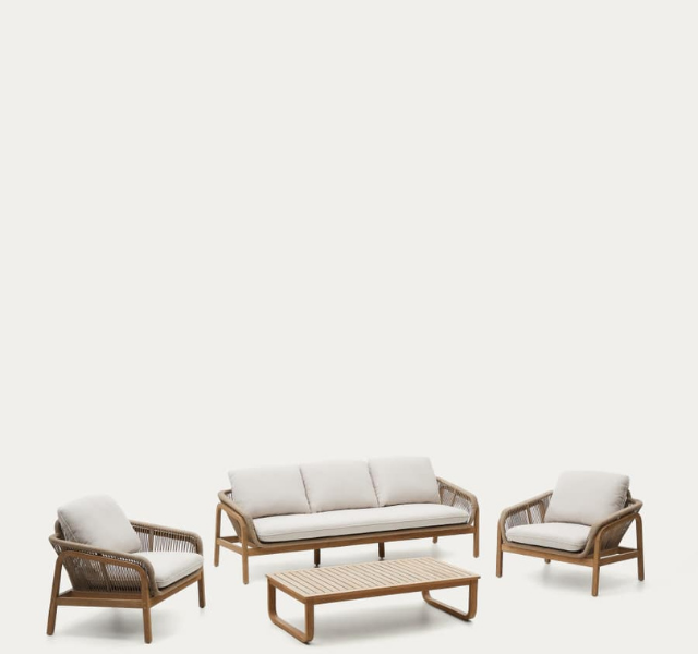 ชุดโซฟาไม้สักทันสมัยสำหรับสวนกลางแจ้ง โฟร์ซีซั่นส์ รีสอร์ท ฮัวลาเล พร้อมโต๊ะกาแฟ ดีไซน์ทรอปิคอล เหมาะสำหรับวิลล่า รีสอร์ท ลานบ้าน และระเบียง