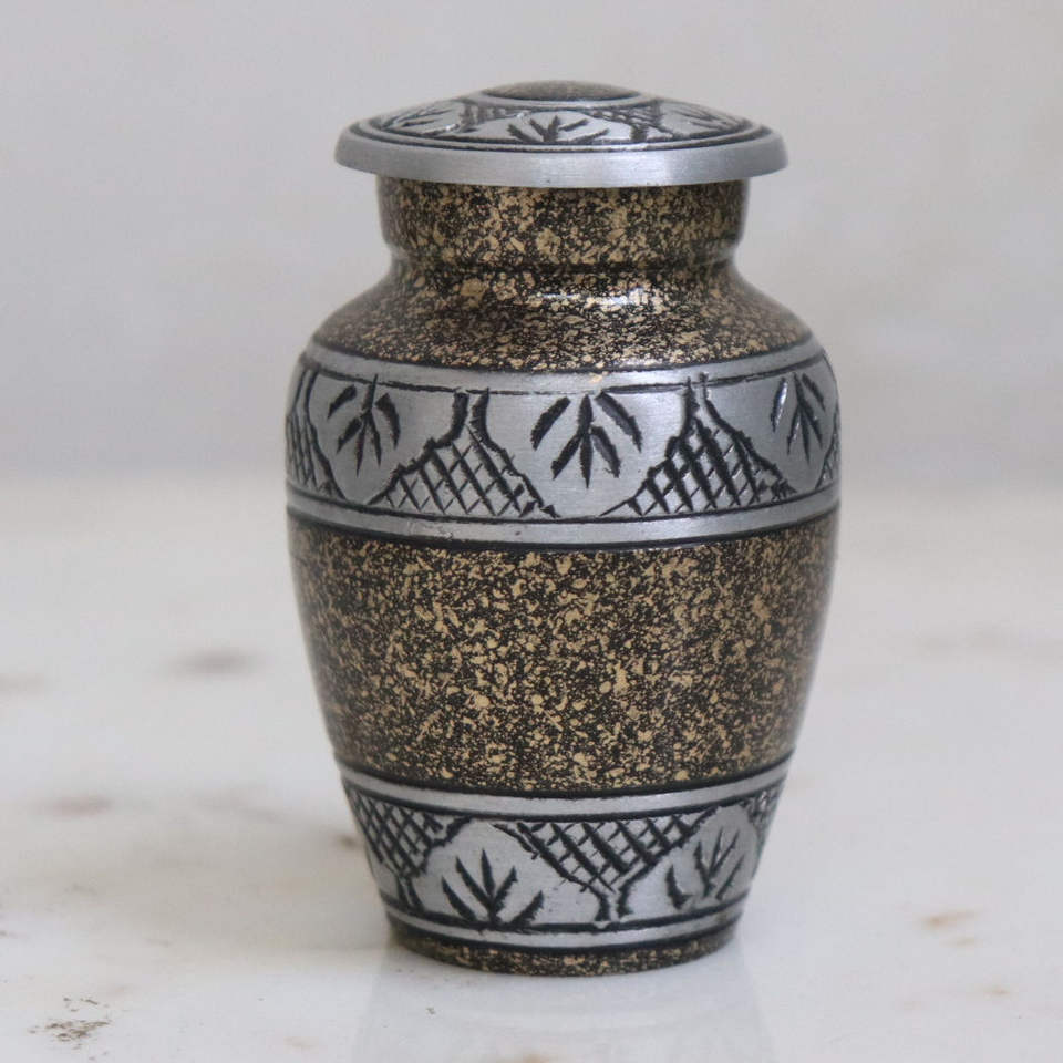 โกศโลหะสีฟ้าอมเขียวลายจุดทันสมัยพร้อมฝาสีเงินเรียบสำหรับจัดแสดงอัฐิที่ระลึก