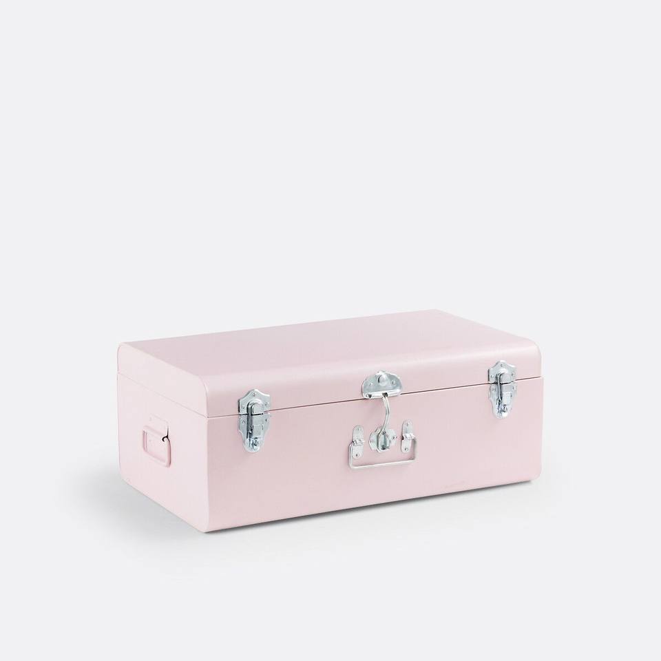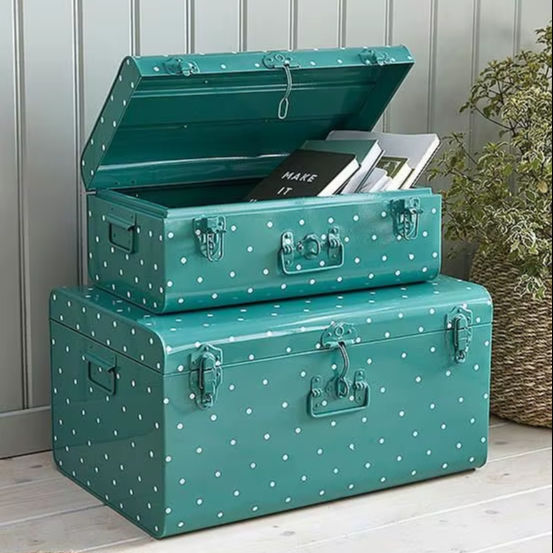 Modern Teal Polka Dot Steel Storage Trunk Pair With Secure Latch System For Home Organization