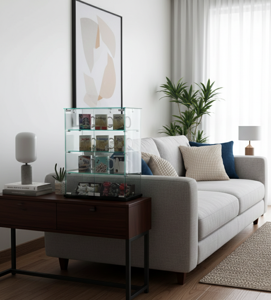 ตู้โชว์กระจกนิรภัยทันสมัยสำหรับห้องนั่งเล่น พร้อมชั้นวางกันฝุ่นสำหรับของสะสม เหมาะสำหรับบ้าน โรงแรม และร้านอาหาร