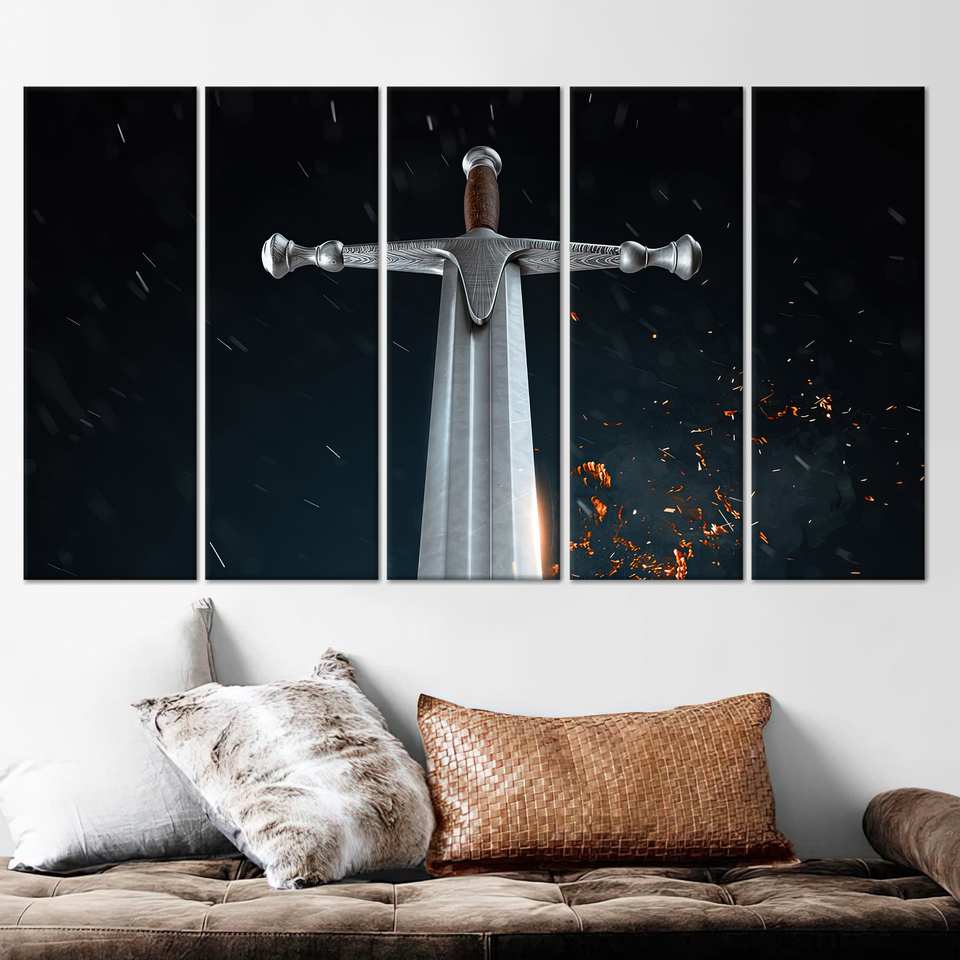 งานศิลปะบนผ้าใบพิมพ์ลายดาบซามูไรกระจกนิรภัยสมัยใหม่ ชุดผ้าใบ 5 ชิ้น