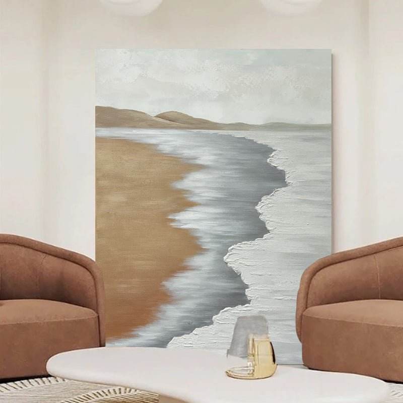 Modern Textured Beach Seashore Wall Art Customized Size Oil Painted seascape Painting Oil on Canvas with Floral Subjects