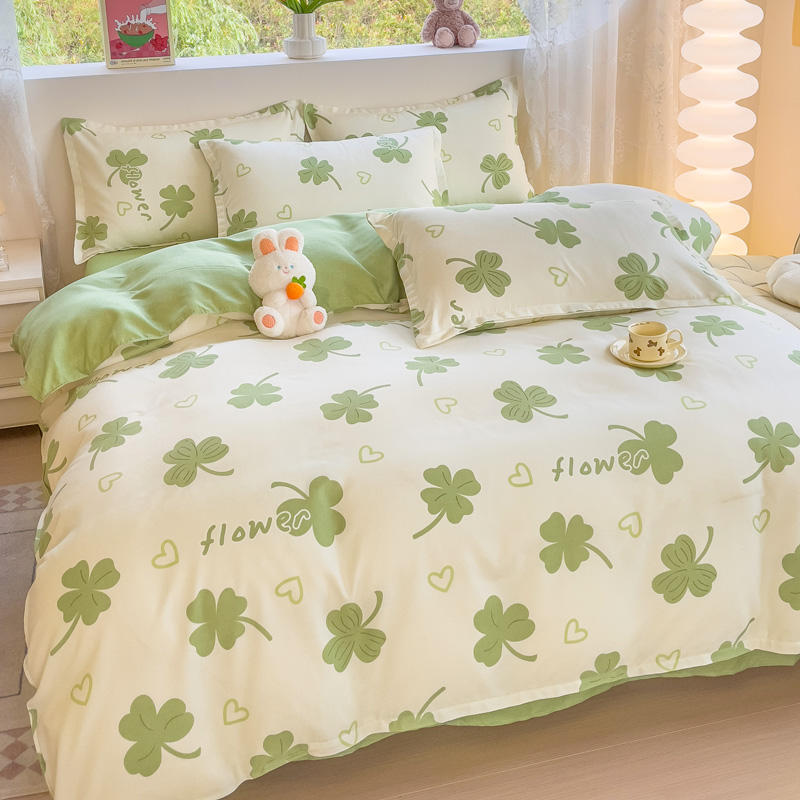 ชุดผ้าปูที่นอนสี่ชิ้นแบบหนาทันสมัยพร้อมผ้าห่มปลูกพืชสองด้านผ้าปูที่นอนติดตั้งทนทานสำหรับทุกฤดูกาล
