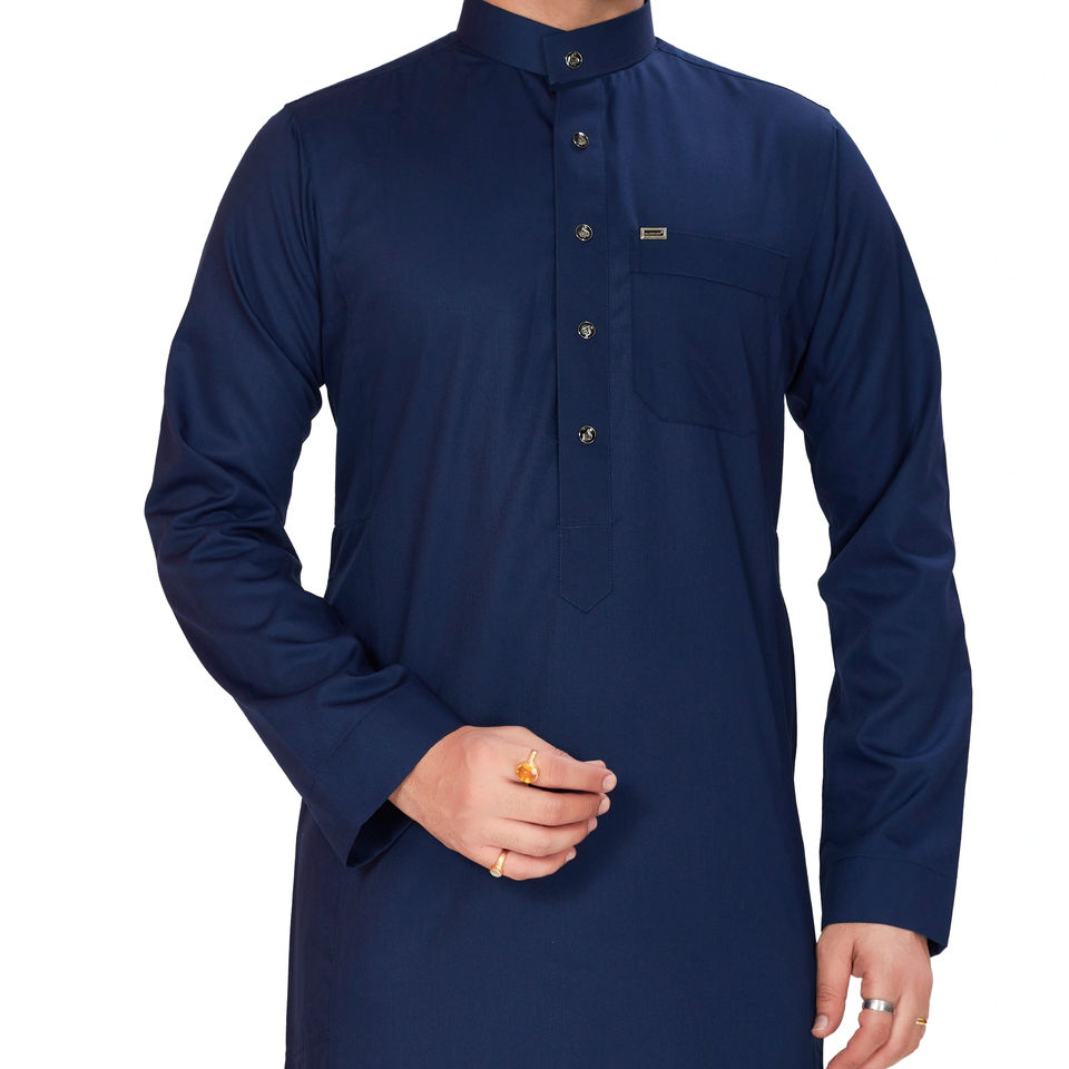 Modern Thobe for Outdoor Summer Polyester Arab Thobe-Breathable Summer Long Sleeve Robe for Men Muslim Traditional Clothing