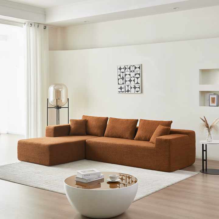 โซฟาสามที่นั่งรูปตัว L แบบทันสมัยพร้อมเบาะผ้าเชอร์ปาเบาะโฟมแบบไม่มีที่วางแขนด้านหลังดีไซน์แบบไม่มีที่วางแขนสำหรับห้องนั่งเล่น