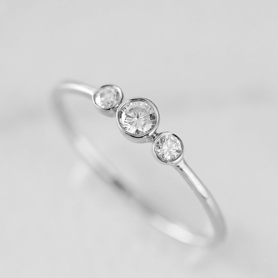 แหวนเพชรสามเม็ดแบบโมเดิร์น10K แหวนมินิมอลทำมือแหวนเพชรสำหรับปลูกในห้องปฏิบัติการแหวนแต่งงาน